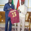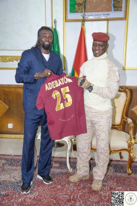 Promotion du football : les anciens internationaux Emmanuel ADEBAYOR et Charles KABORÉ chez le Président du Faso